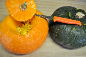 Here is a link to the recipe, and here are my recipe notes: make sure to salt the inside of the pumpkin pretty liberally with kosher salt, before you stuff the pumpkin. Also, make sure you add enough cream so that it is really moist and the bread is floating in the cream a bit. Cheese: please buy Emmentaler (which you can get for a great price at Trader Joes) or Gryuere and cube it– do not buy pre-shredded Swiss cheese, which will taste bad. Also, fresh thyme is a must – do not use the crappy, dry stuff. I prefer to serve it scooped rather than sliced – just dig a spoon in and make sure to get some pumpkin and some of the stuffing – a match made in heaven.