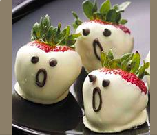 Chocolate covered strawberries that look like ghosts. Delicious and adorable.