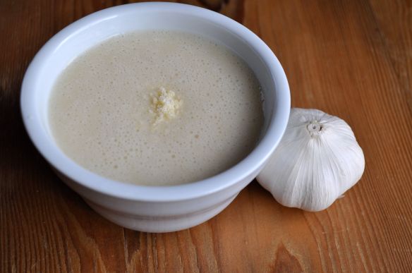 There are two secrets to this recipe: 1 – You must use Yukon Gold potatoes – I tried using russets and it was not as creamy. 2 – Store bought chicken stock is fine, but homemade chicken stock, in this recipe particular (since there are so few ingredients), really takes it up to another level. I was also thinking some crumbled bacon on top would be extra delicious. Enjoy the garlicky goodness of this soup!